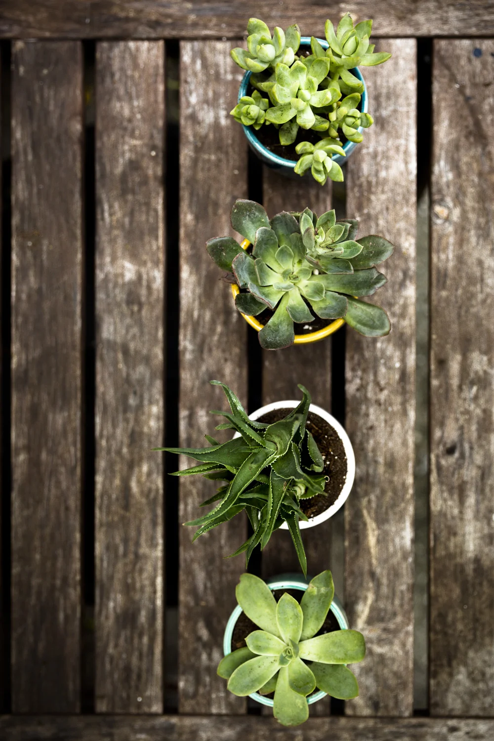 I found these four tiny pots from Hobby Lobby on sale for a dollar and from there the idea took shape. Lowes provided me with tiny succulents a low price.